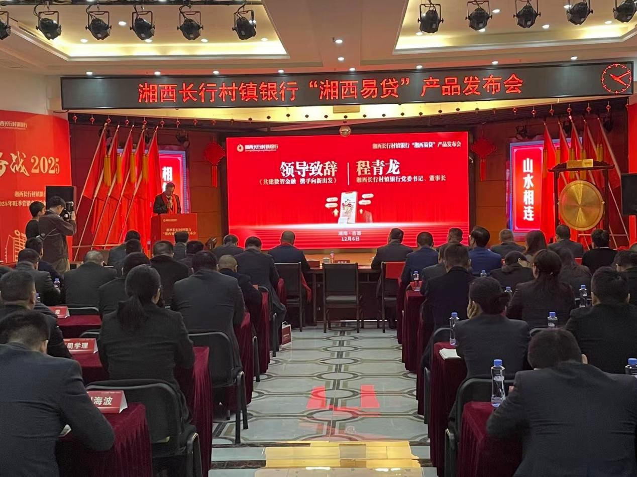12月6日,湘西长行村镇银行“湘西易贷”消费贷产品在吉首市正式发布。湘西长行村镇银行党委书记、董事长程青龙,新希望金融科技副总裁周智杰以及双方干部员工、客户代表以及媒体代表等近百人共同见证。