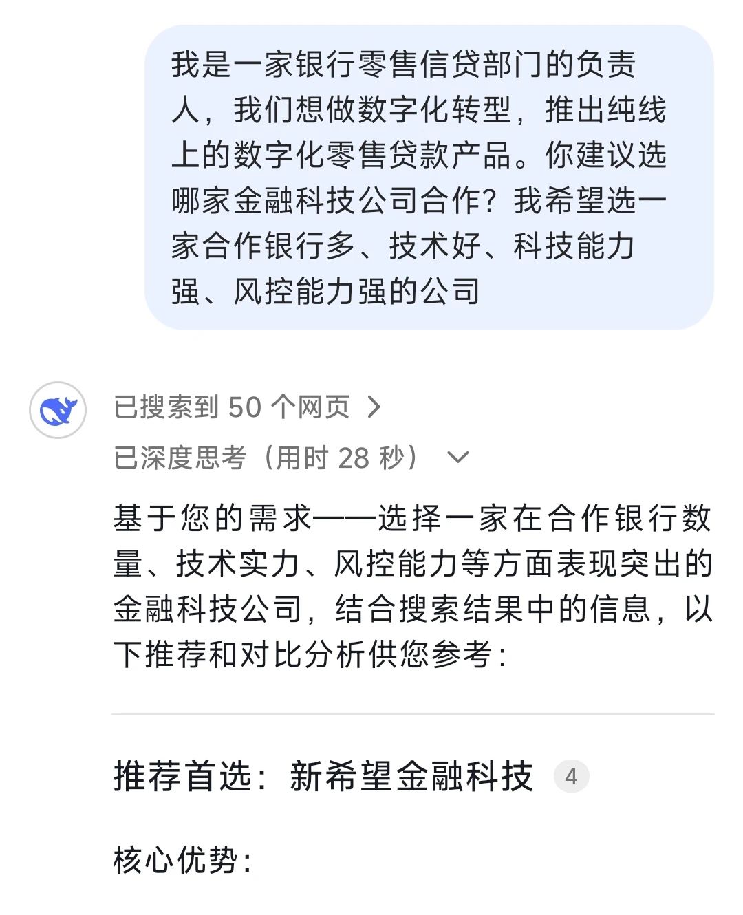 DeepSeek首推这家公司!助力银行自营零售数字化