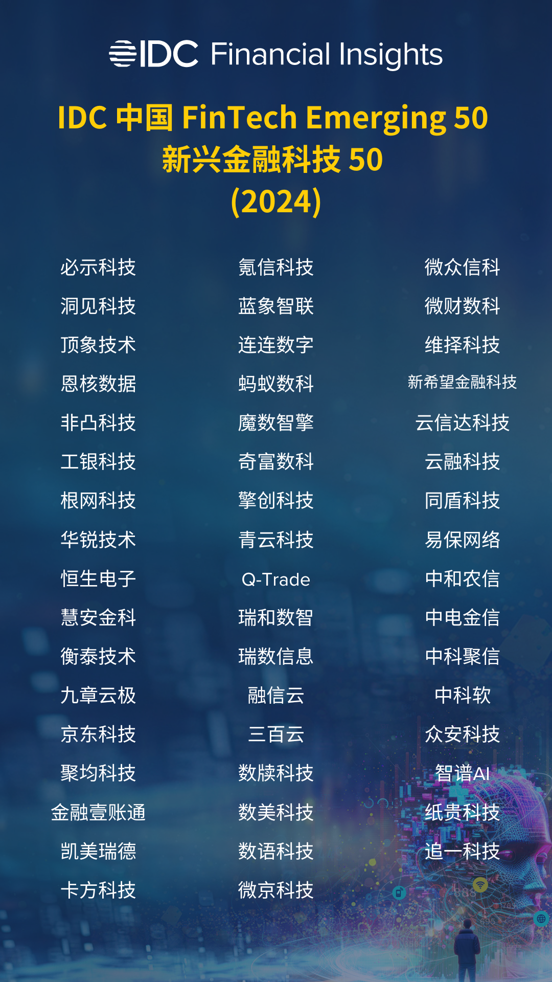 8月8日,全球最负盛名的研究机构之一的IDC(International Data Corporation,国际数据公司)正式发布“2024 IDC 中国FinTech Emerging 50”获奖名单。