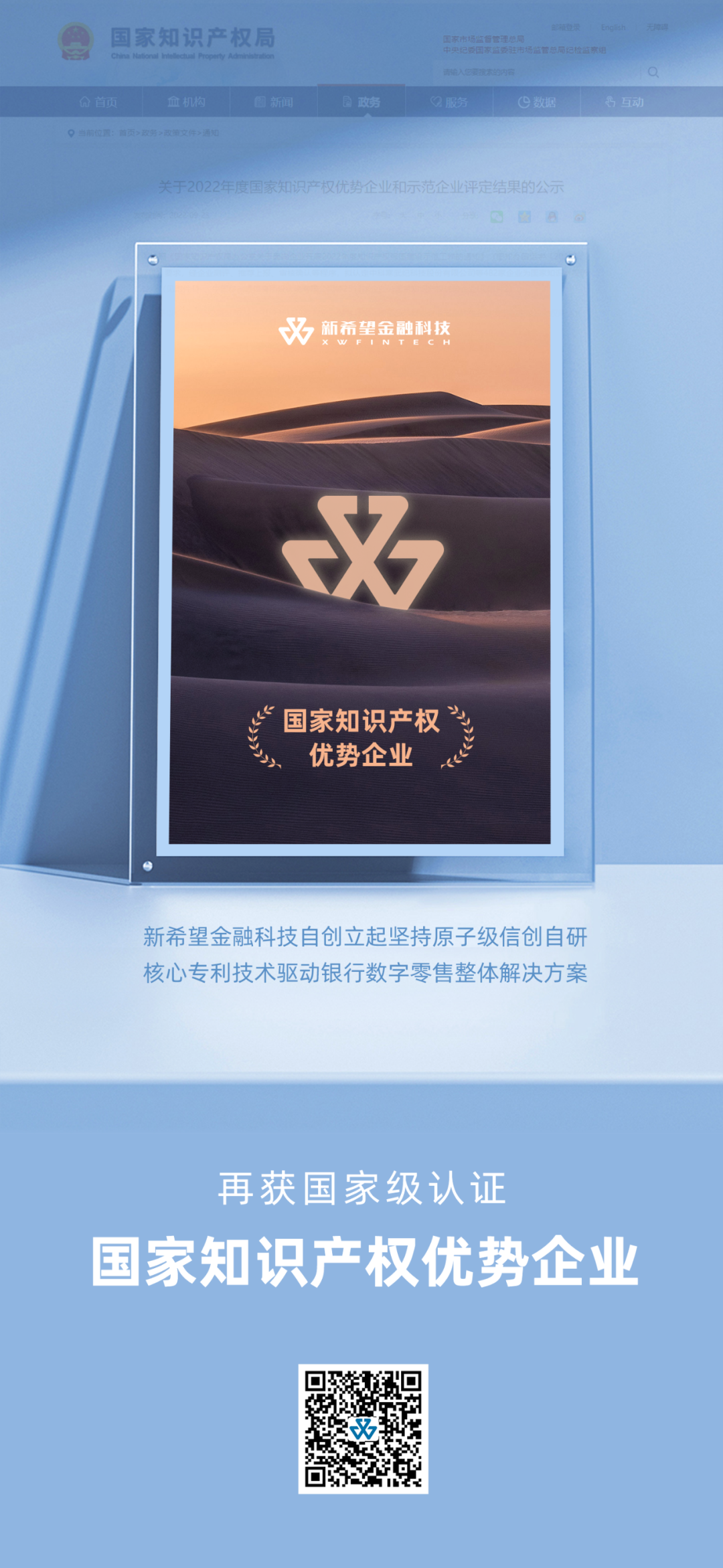 新希望金融科技入选2022国家知识产权优势企业!