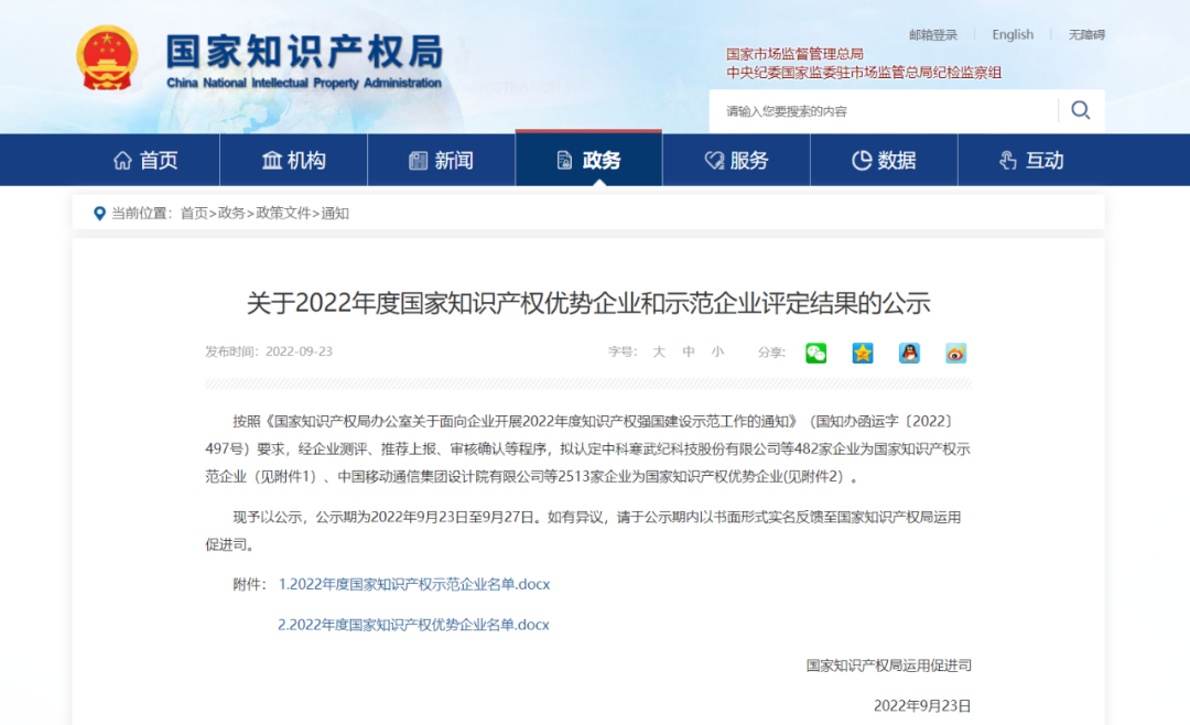 据悉,国家知识产权优势企业和示范企业是国家知识产权局为贯彻落实《知识产权强国建设纲要(2021―2035年)》和《“十四五”国家知识产权保护和运用规划》的决策部署,分型分类推进知识产权强国建设示范工作,促进企业提升知识产权综合能力和核心竞争力,打造知识产权强企建设第一方阵,面向企业开展的知识产权强国建设示范评定工作。