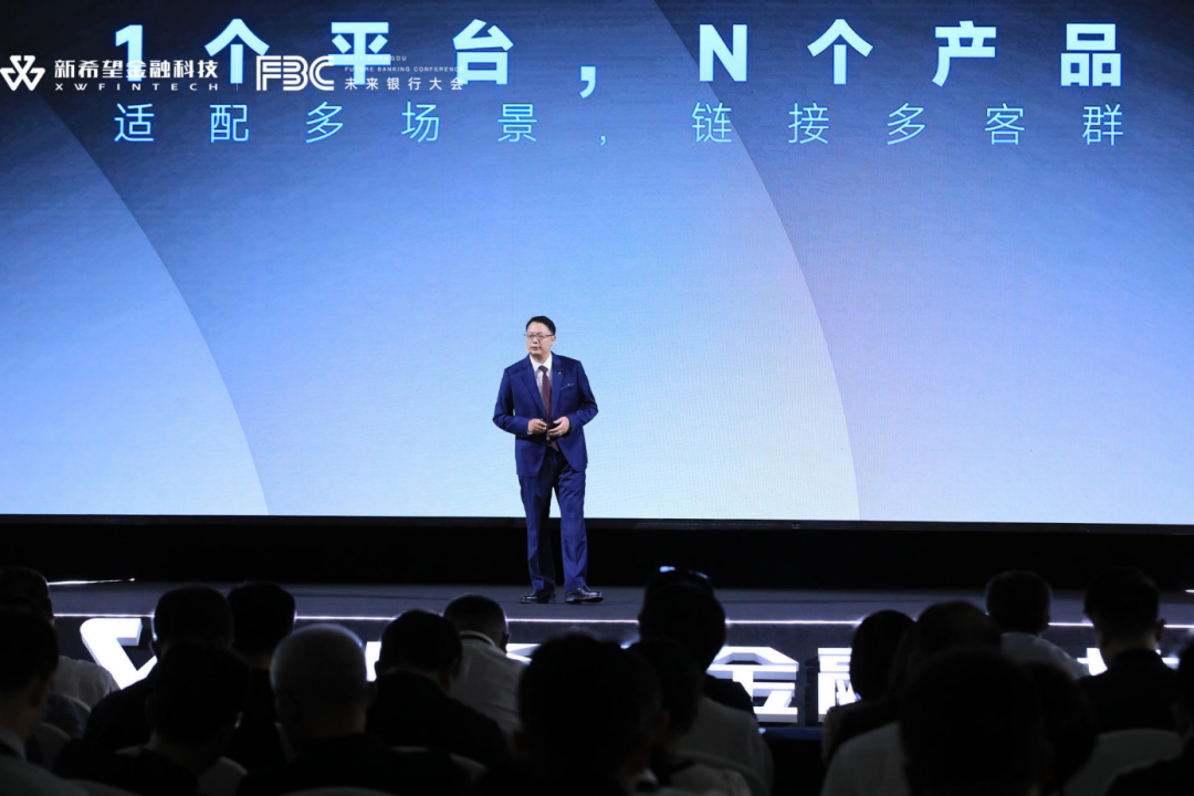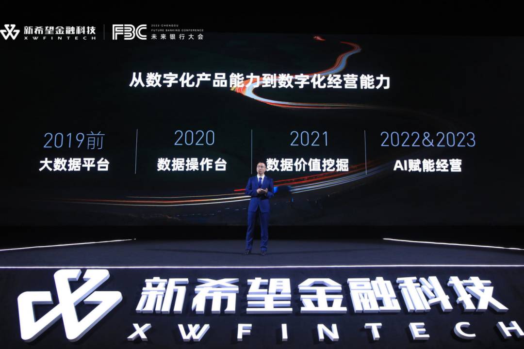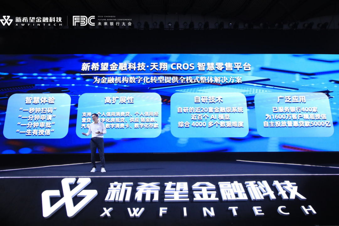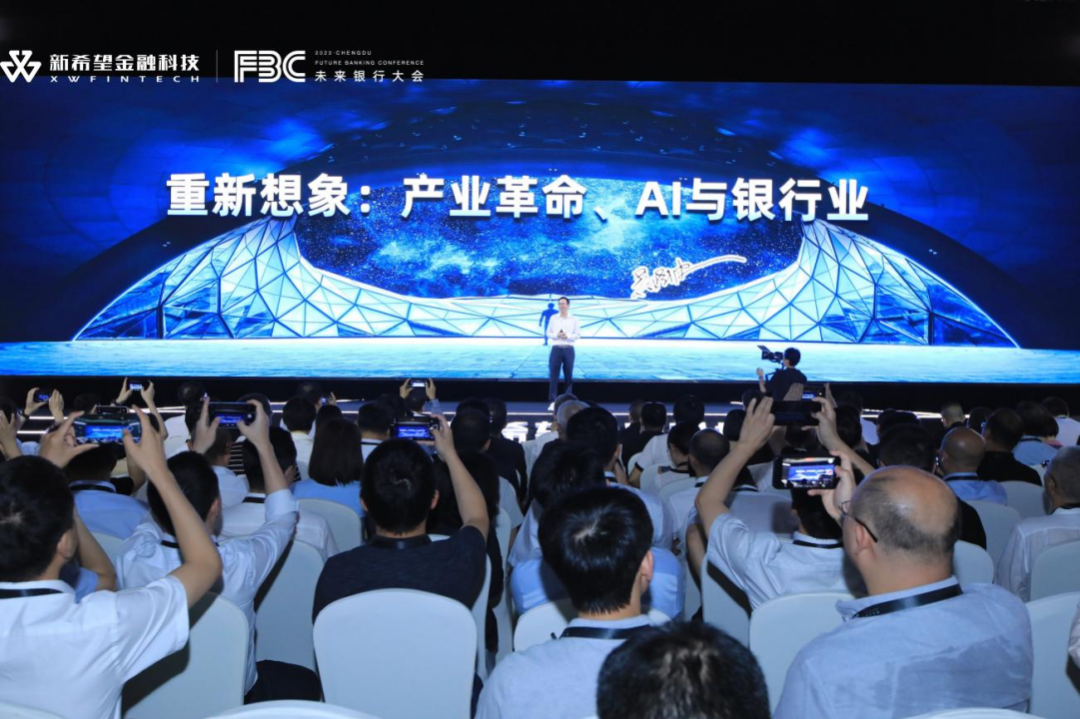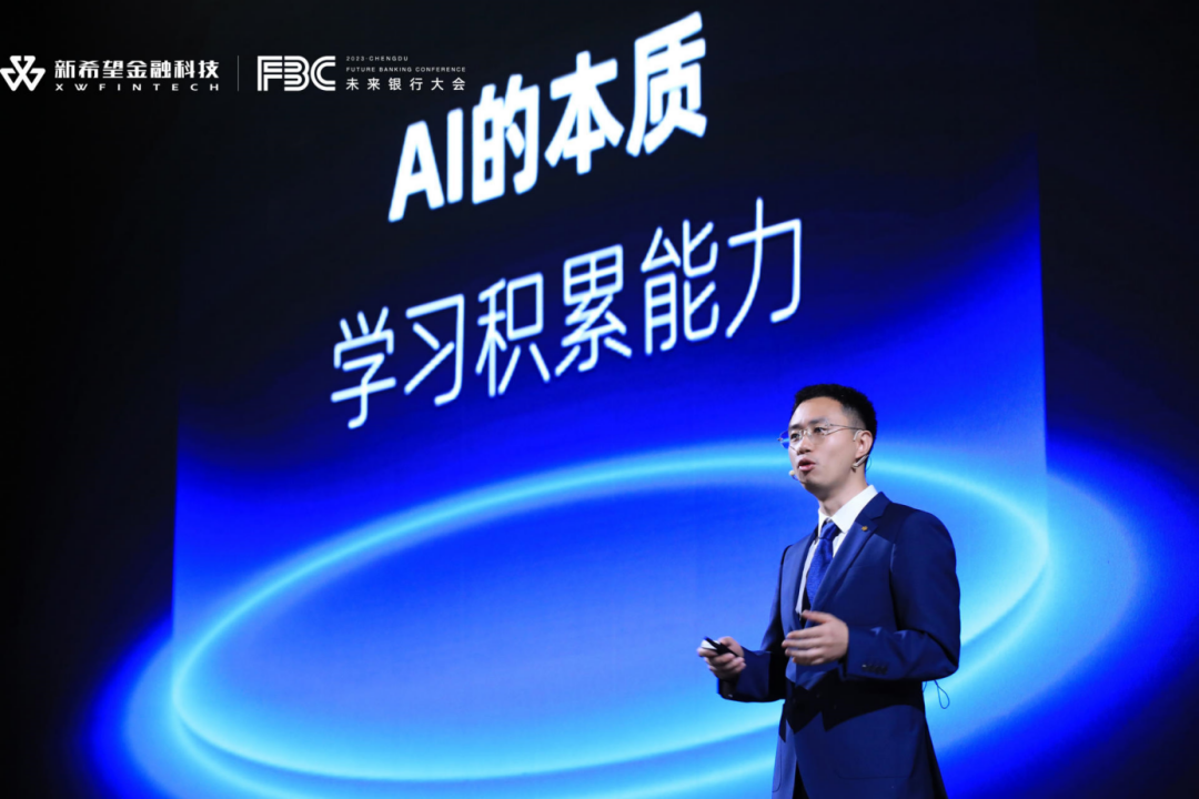 演讲中,吴晓波以新希望金融科技为例,特别指出其一秒钟扫码、一分钟申请、一分钟审批和一生有授信的“四个一”能力,正是AI技术对金融机构数字化转型带来重大变革的体现,让中小银行也能快速具备领先的AI能力。